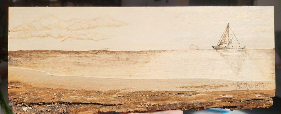 The composition unfolds in layers of depth and texture, shaped by the natural grain of the wood. No stencils, transfers, or templates were used. Every line was drawn directly with heat and intuition.